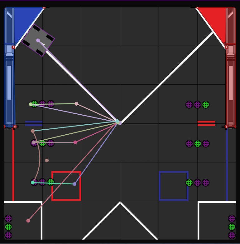 Highlight: 12-artifact autonomous routine and multi-stage scoring paths using Pedro Pathing.