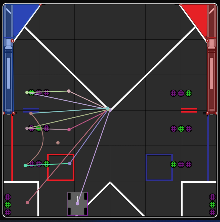 Our software stack is built for reliability under match chaos: reactive pathing, vision alignment, driver assists, and recovery logic.