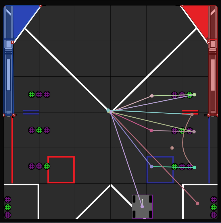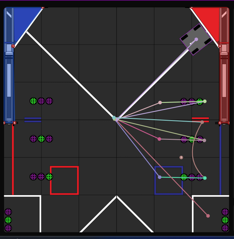 We use Pedro Pathing — a reactive Bézier curve follower with ~1500 recalculations per second and 8 PIDF loops.